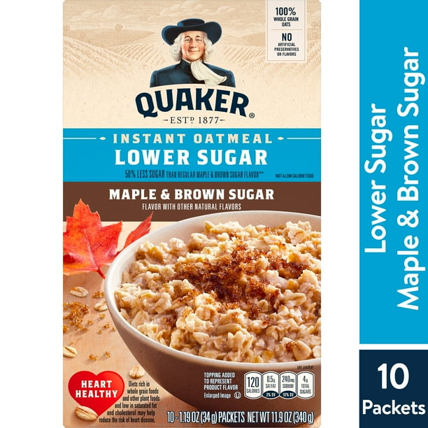 Quaker Instant Oatmeal Lower Sugar Maple Brown Sugar 1 19 Oz 10 Packets Walmart Com